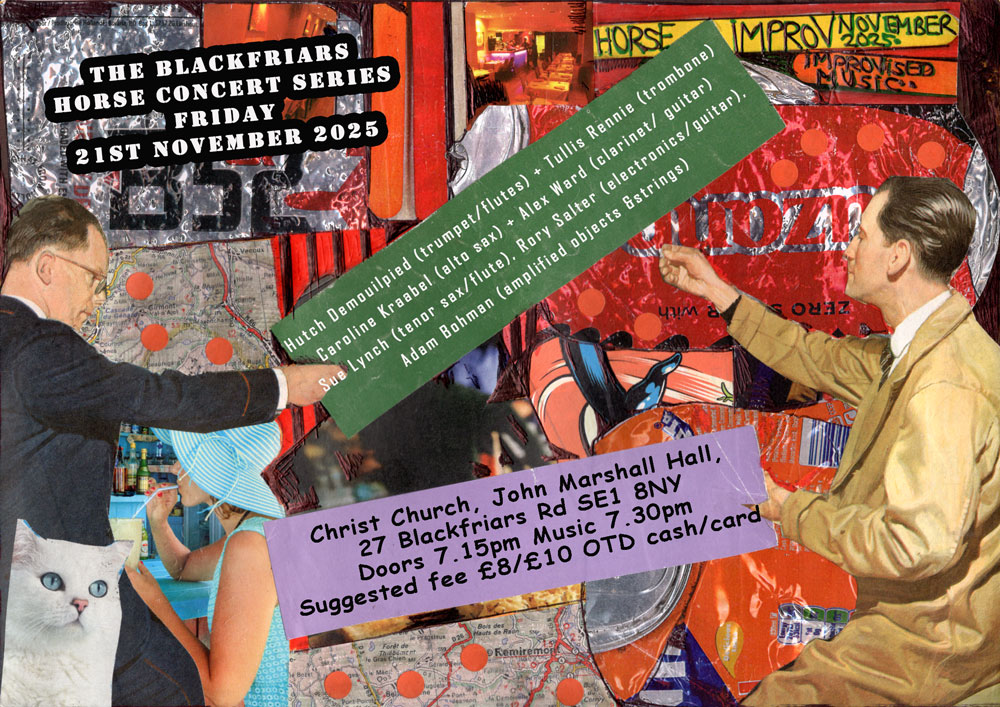 21 December 2025: 12-hour improvisation at The Horse Hospital, London! Kraabel and dozens more involved in and overlapping relay of free improvisation, non-stop 10h00-22h00! More details soon!