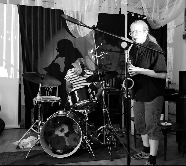 With Louis Moholo Moholo, Iklectik, 2015. Photographer unknown.