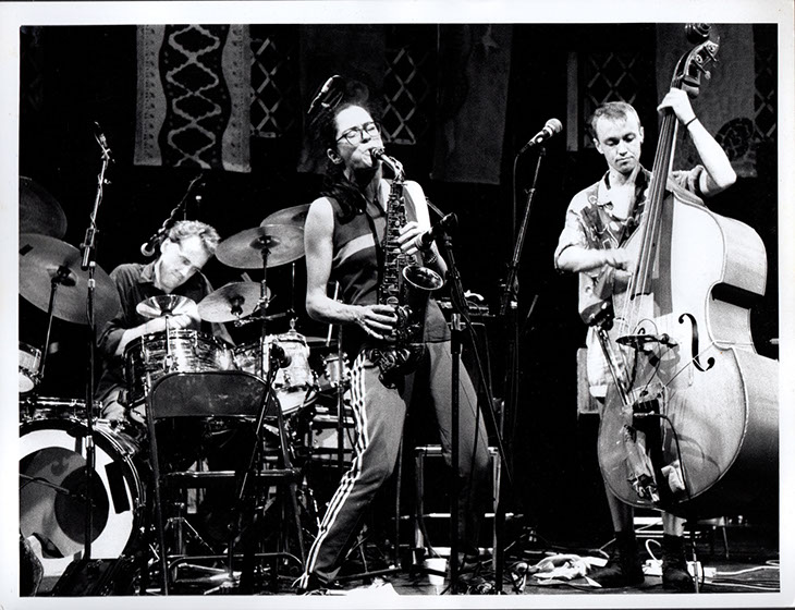 With Maggie Nicols and Shirley Hall, Ramona Africa Benefit, 1989. Photographer unknown.